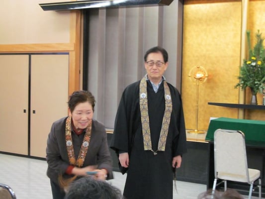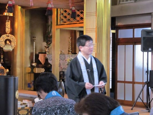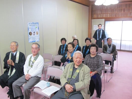 (↑お孫さんも一緒におつとめ 前列中央の役僧・佐藤さん、お世話になりました!)