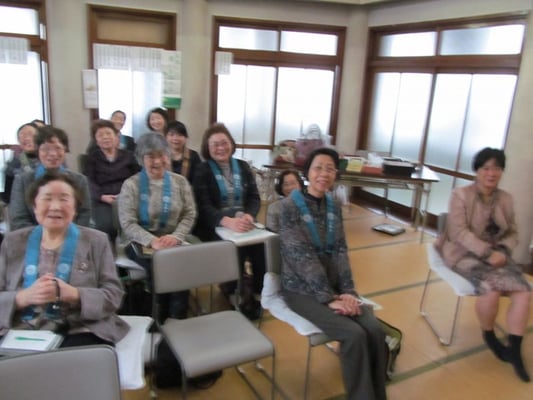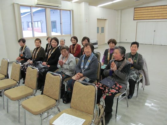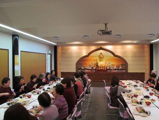 (婦人部の方々を中心にお昼を頂く。