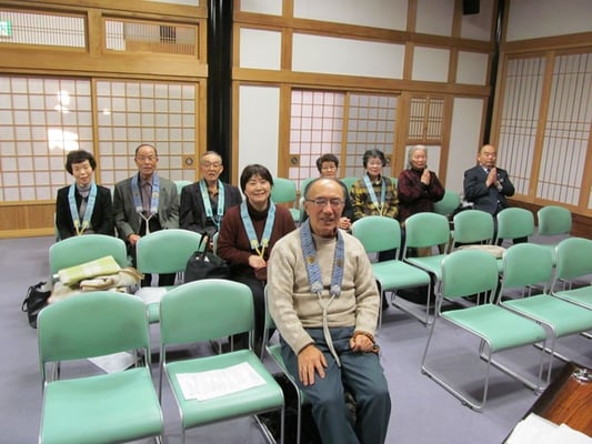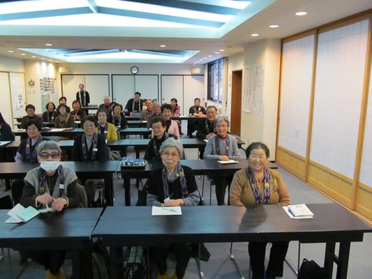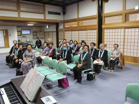 (↑和服の女性は、総代さん。華道のお師匠さん。 終了後の記念撮影)