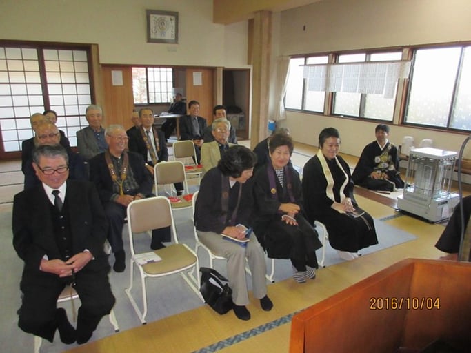 (右端のお二人が、新住職さん新坊守さん)