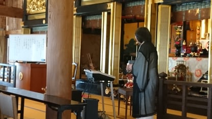 ↑ご挨拶される小池俊章ご住職さん。