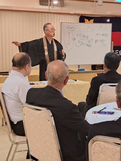 高校1年生の同級生、清水君(元ブリヂストン専務)が会長を務める、八千代三田会で法話しました。彼とは、考えると、55年のお付き合いですw
